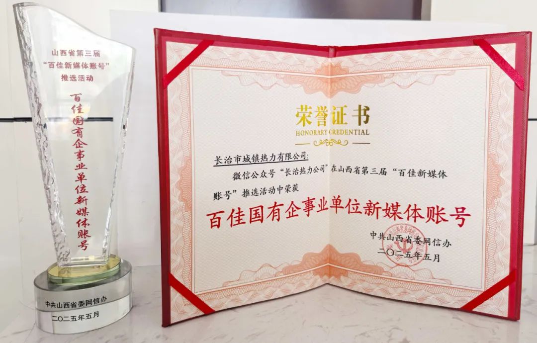 • 喜報(bào)!長治熱力公司微信公眾號榮獲山西省第三屆“百佳國有企事業(yè)單位新媒體賬號”長治市
